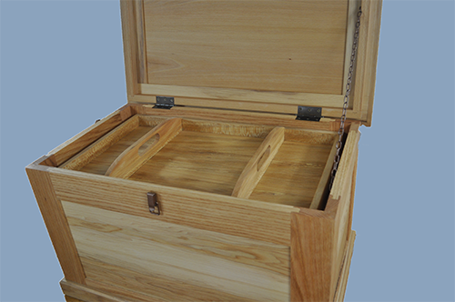 I have designed all of these styles of chests with an added bonus.  The lid stay – rather it be chain or rope – can drop down into a recessed area and not bind on the tray.  Any of the chests can be built with three optional lids – raised panel, modified raised panel or flat panel.  These chests can be built with hand tools or machinery and intermediate skill level.  This is an example of a piece that has multiple uses today’s modern homes and shops.