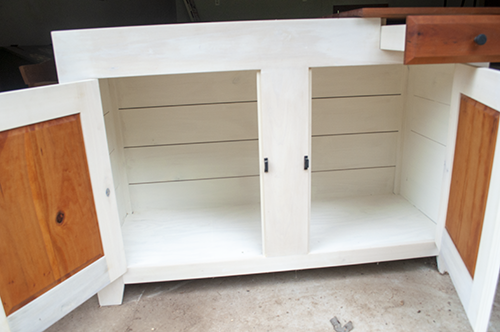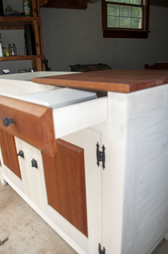 My design uses native hardwood to accentuate the storage areas, such as the door or drawer. I prefer to use milk paint of the rest of the surfaces. This combination makes for a pleasing look that will match any décor found in today’s homes.