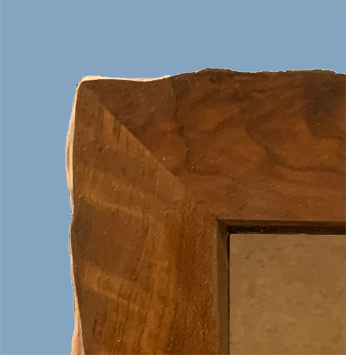 Measures 16 7/8″T x 10 7/8″ W x 2″D. Frame will vary depending on live edge.